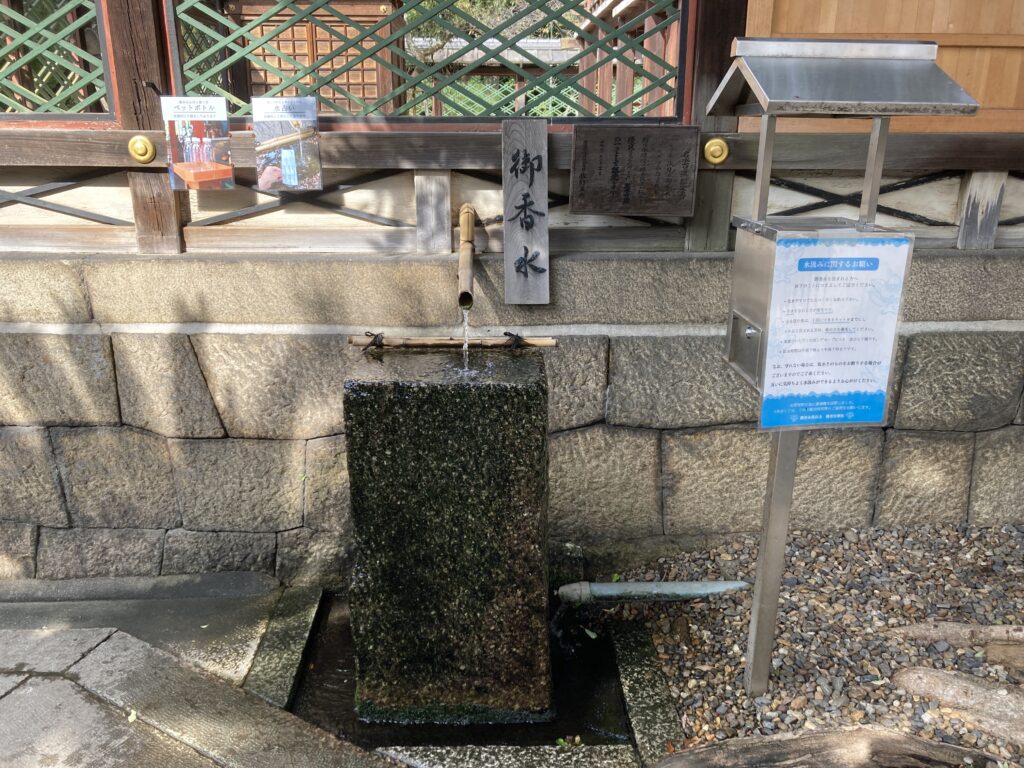 御香宮神社と言えば、平安時代から湧き続けている名水、御香水が有名です。境内に湧水が出た時、良い香りが漂ったことから、清和天皇より「御香水」の名を賜ったとのこと。