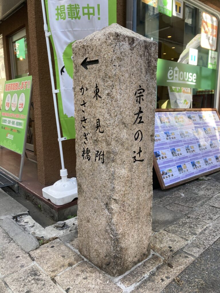 当時、この辻に製油業を営む角野宗左の屋敷があったことから、宗左の辻と呼ばれています。