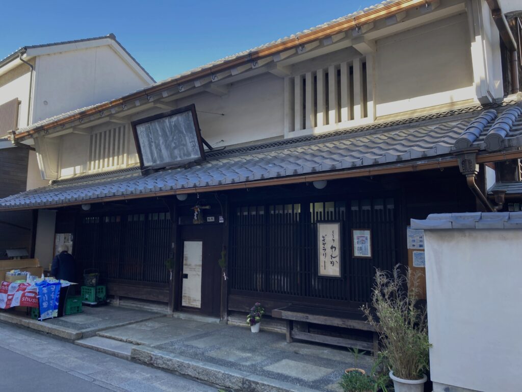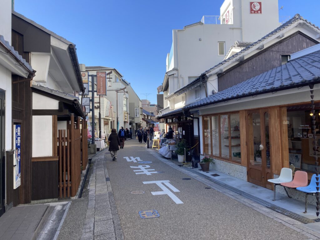 現代的な喫茶店の隣に老舗のみそ屋がある。古さと新しさが違和感なく立ち並んでいて、観光と日常のショッピングを同時並行してる感じが面白い。