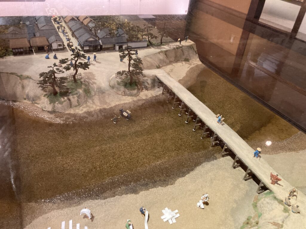 あとで立ち寄る枚方宿鍵屋資料館にあった江戸時代のかささぎ橋付近のジオラマです。