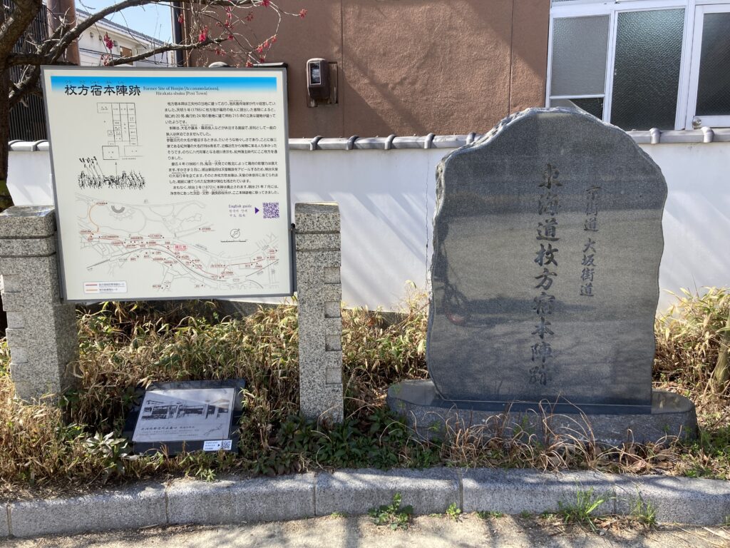 かささぎ橋を渡り、少し川沿いに進んだところにかつての枚方宿の入口、東見附がありました。