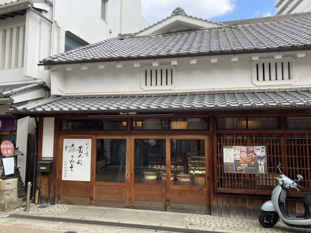 YORKIE COFFEEの隣は、1883(明治16)年創業の老舗みそ店、「北村みそ本家」。大阪市内の天満で創業し、枚方に工場を建てたのが始まり。その後、天満の店が戦争で焼けてしまったため、枚方に一本化して営業を続けているとのこと。