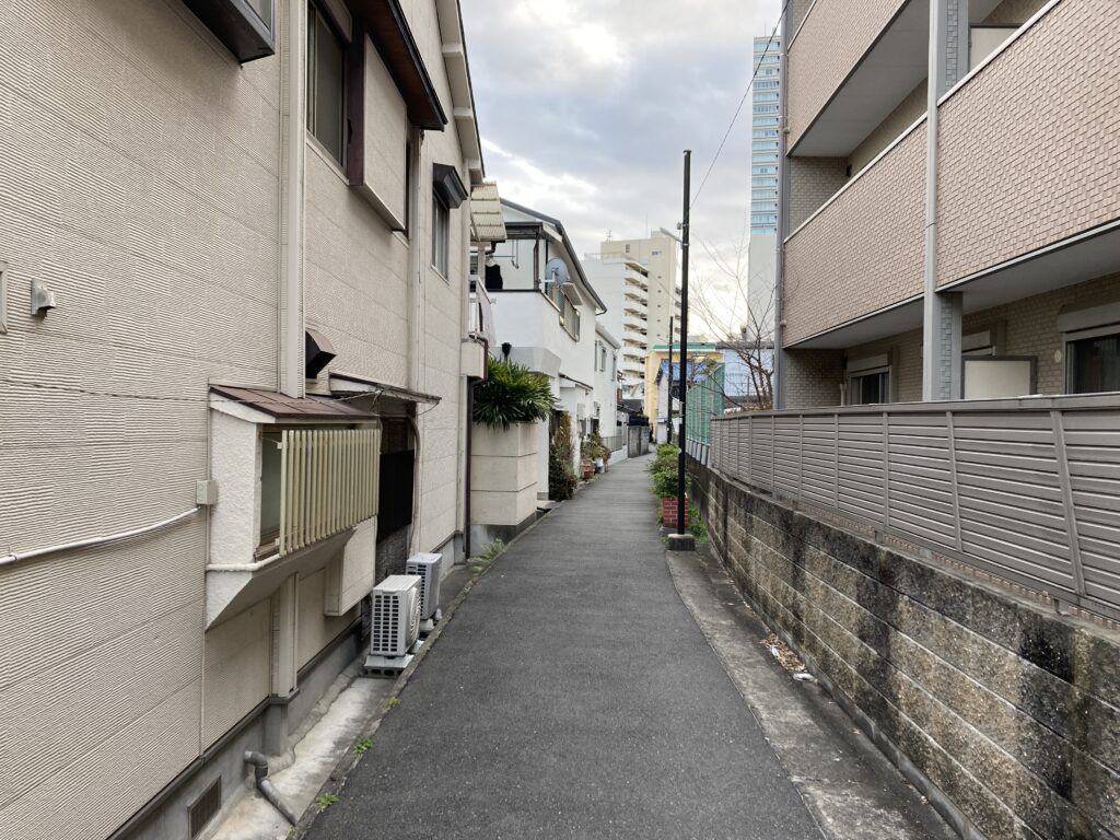 一般的な町割りでは、建物の裏口を背中合わせにし正面玄関を前の道に向けて建っています。裏側同士が背中合わせにすることでプライバシーの保護を確保し、区画を整然と並べやすくなるからです。
