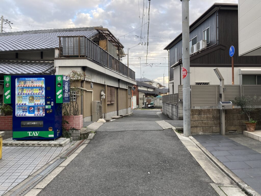 この道はかつてあった五ヶ荘用水路を暗渠化したものだったのです。明治以前は文禄堤の横に淀川が流れており、ここに川から取水するための樋門がありました。