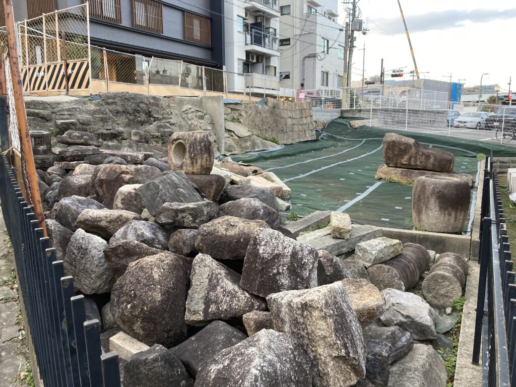 近くには石材群が放置されていました。おそらく、樋門に使われていた石材だったと思います。