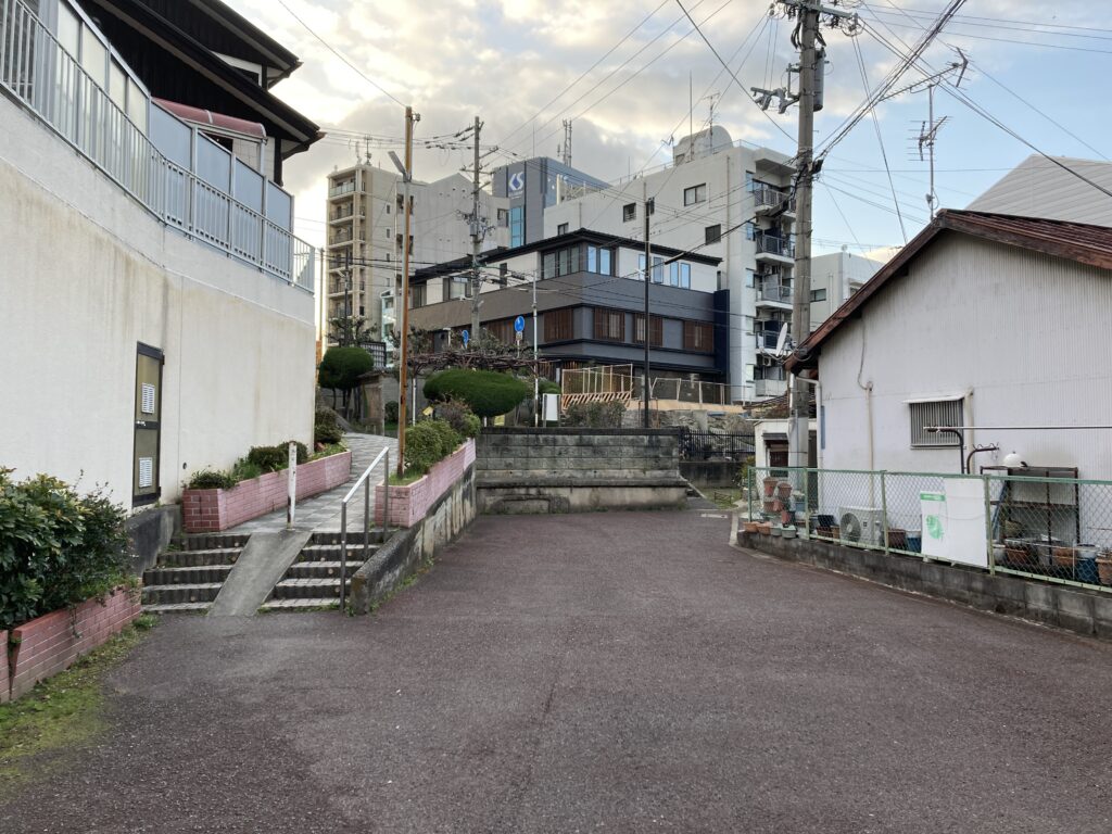 乱歩の住居跡の前には、奇妙な十字路があります。十字路の部分だけ少し高くなっています。