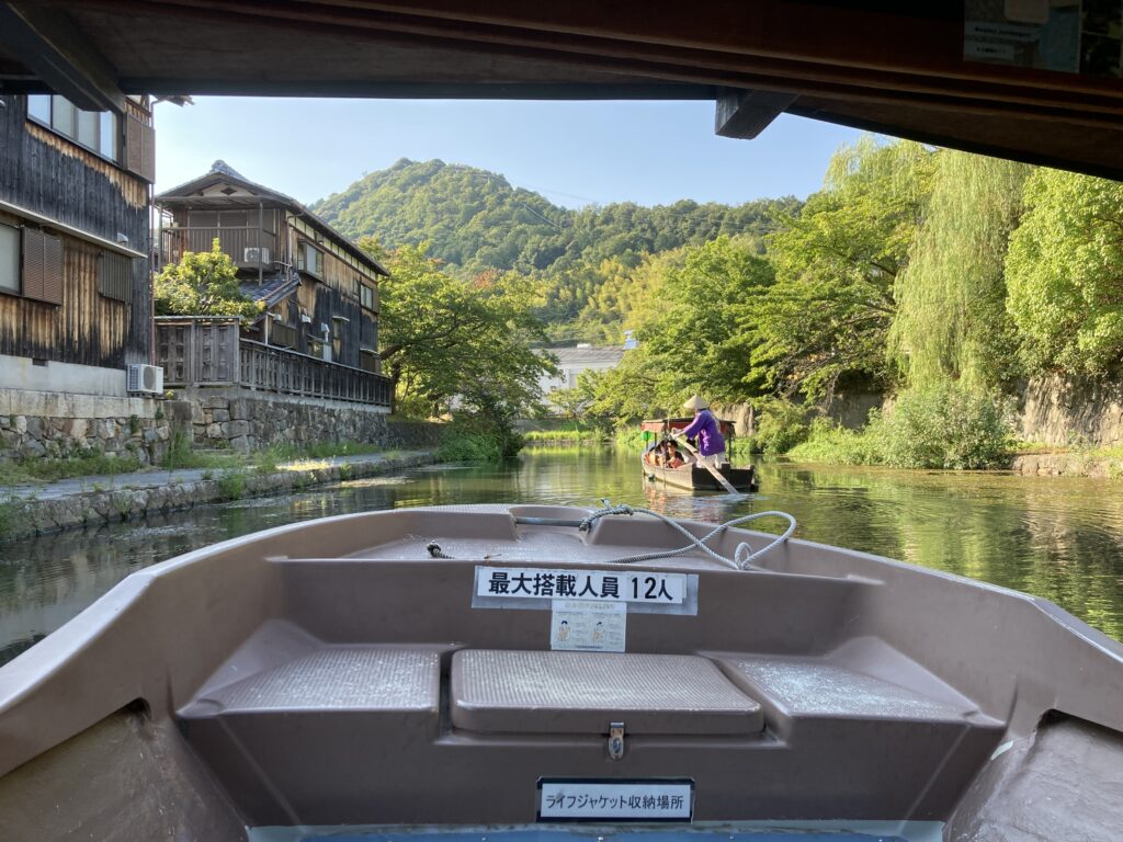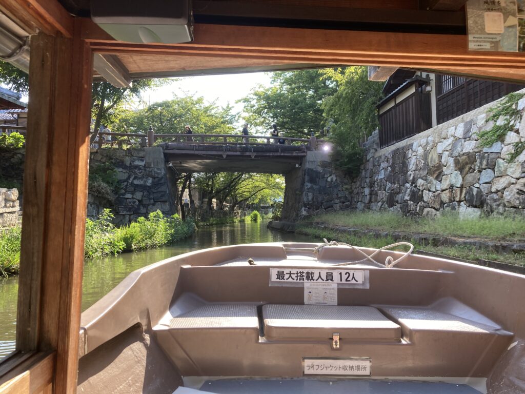 橋から見たり堀沿いを歩いてるだけでも十分に雰囲気を楽しめるが、舟からの景色も見ないことには、八幡堀を堪能し尽くしたとは言えない。