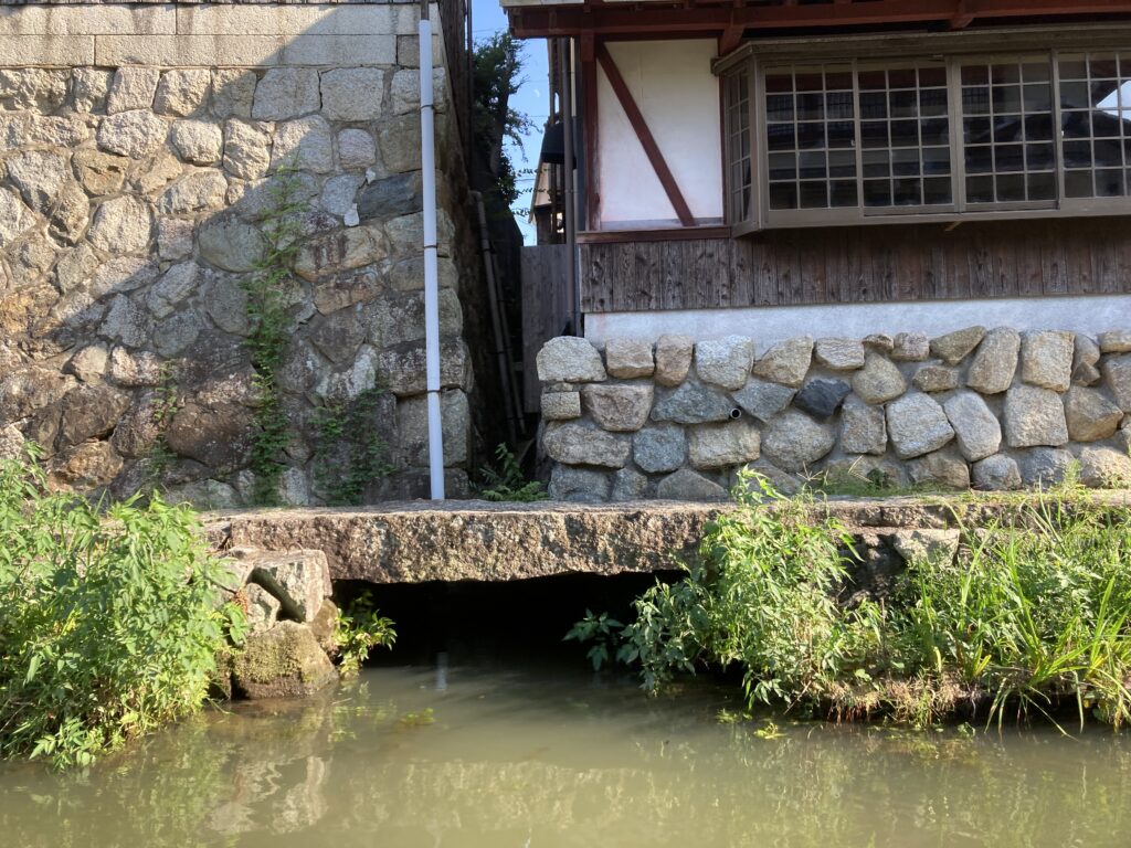 家と家の間を流れる水路で、生活用水や雨水を排水するための江戸時代の下水溝となっている。