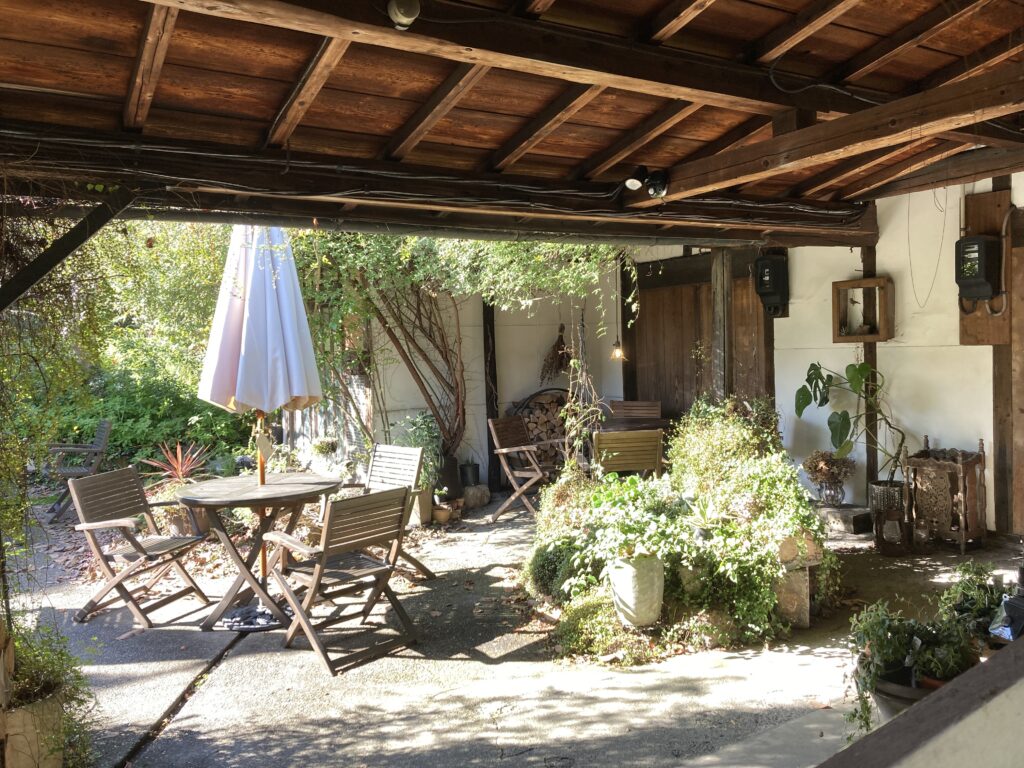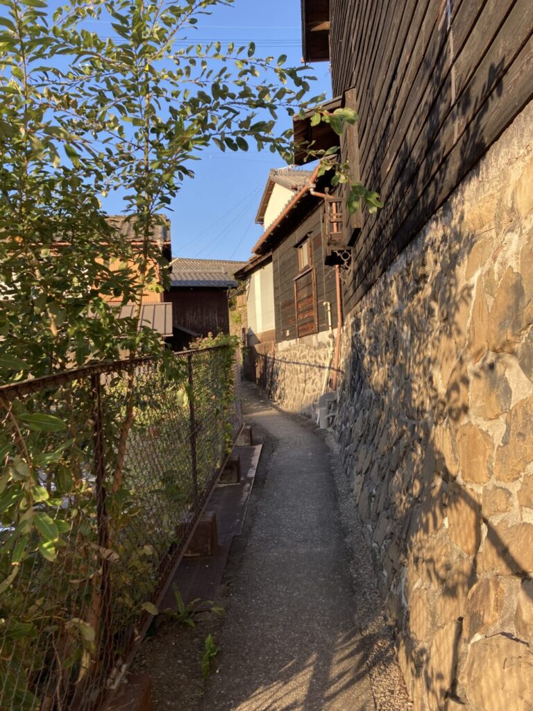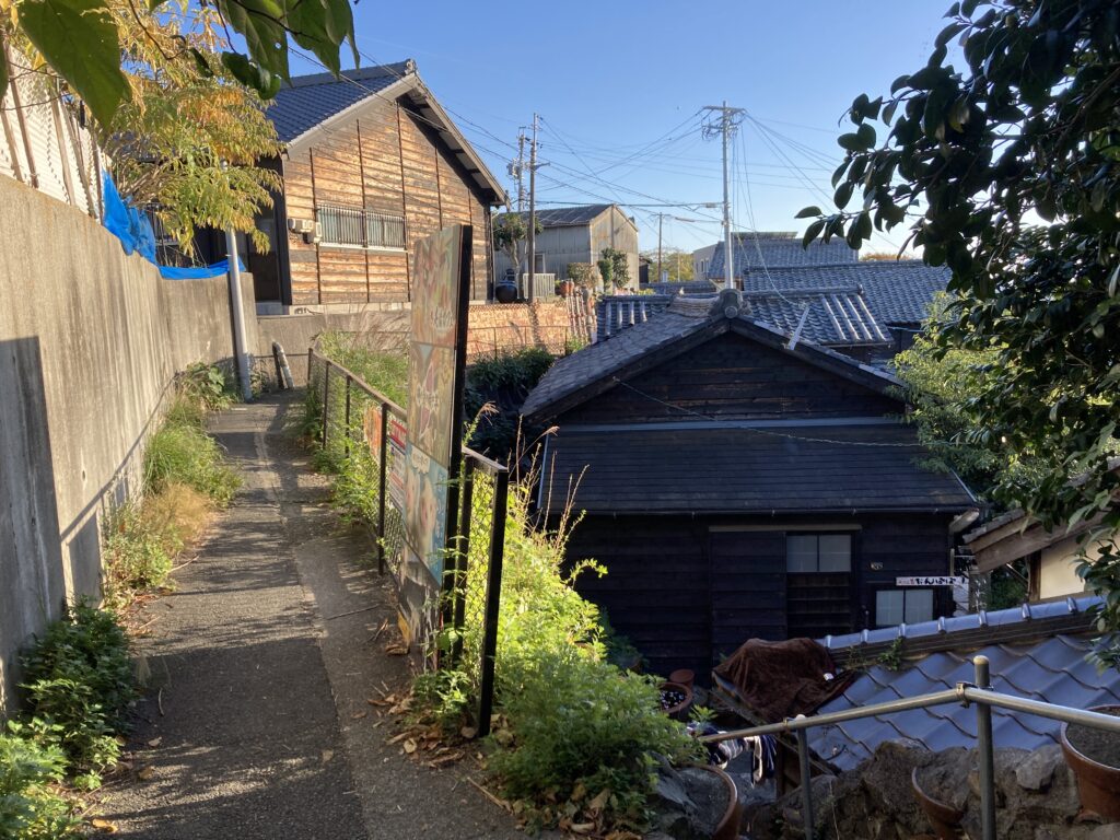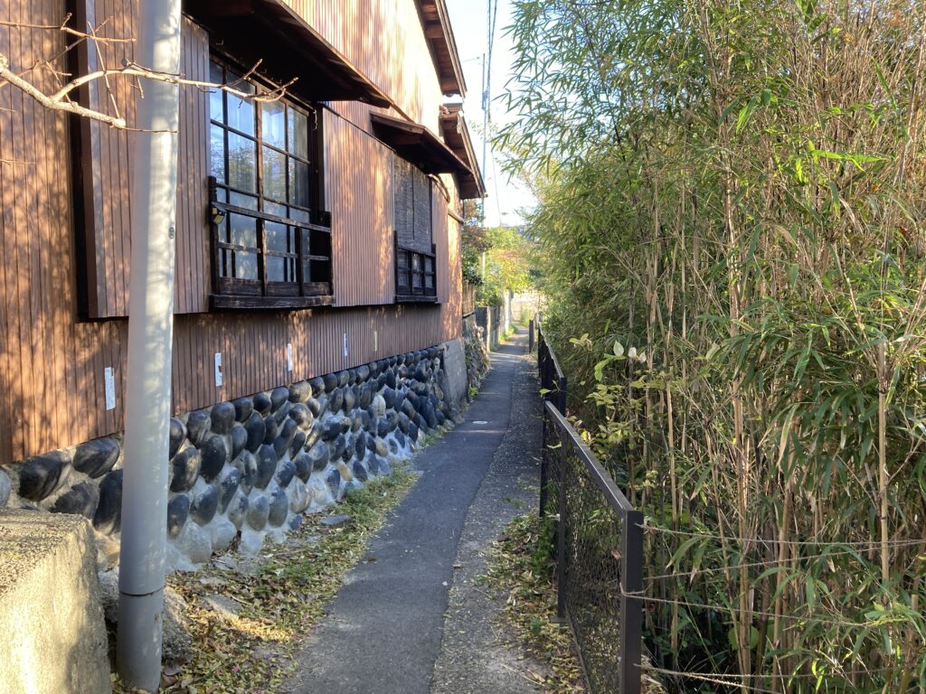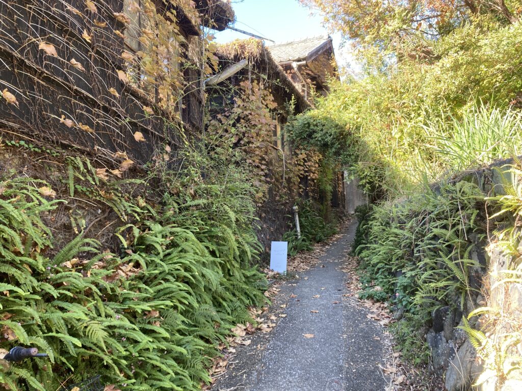 左は古い陶芸工房。改装してカフェになっているらしい。どう見ても廃屋にしか見えないが、よく見ると看板が建っている。隠れ家過ぎるやろ。