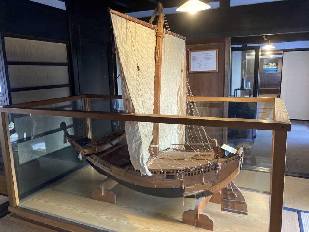 江戸時代の主力帆船、弁財船の模型が飾られています。
