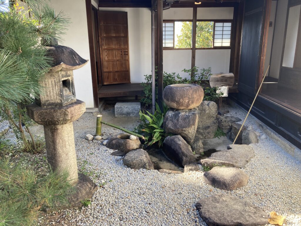 コンパクトなサイズの枯山水庭園には、水琴窟がありました。水琴窟とは地中に水が溜まった瓶が埋められていて、そこに水滴が落ちると音が反響して琴の様な音色が出る仕掛けです。