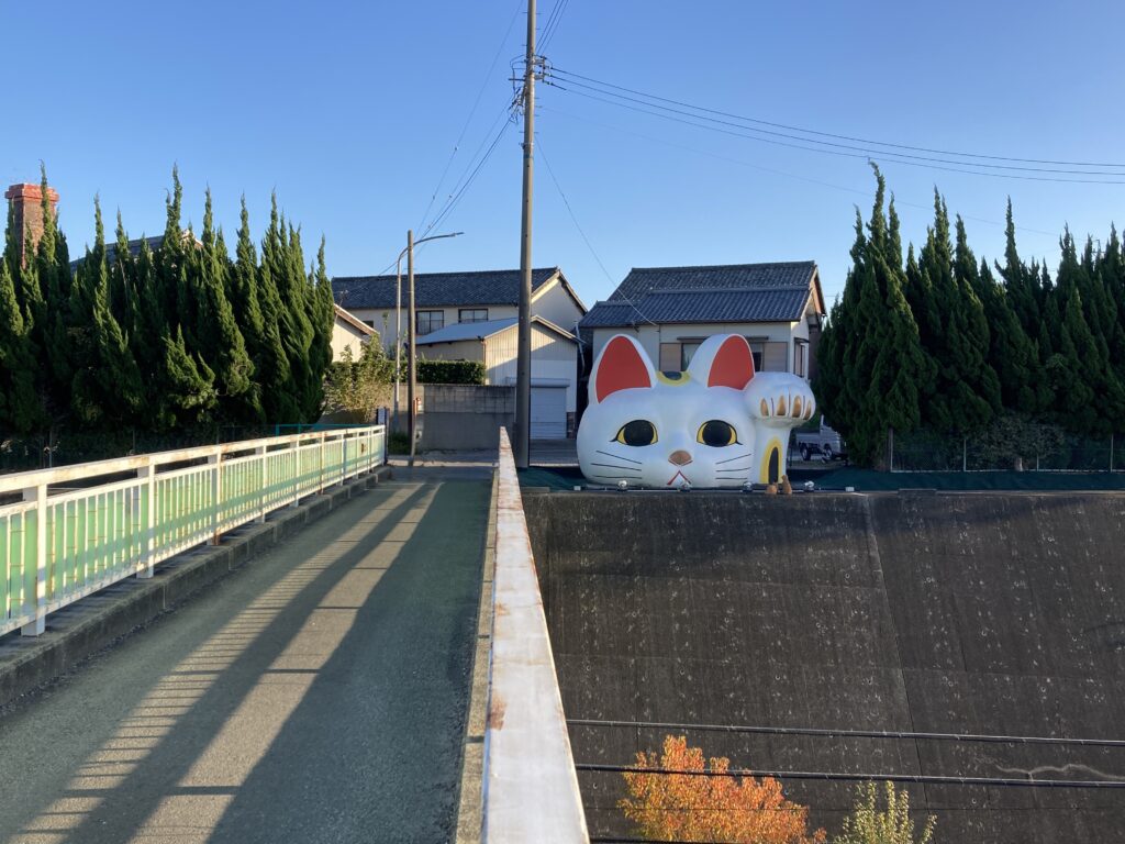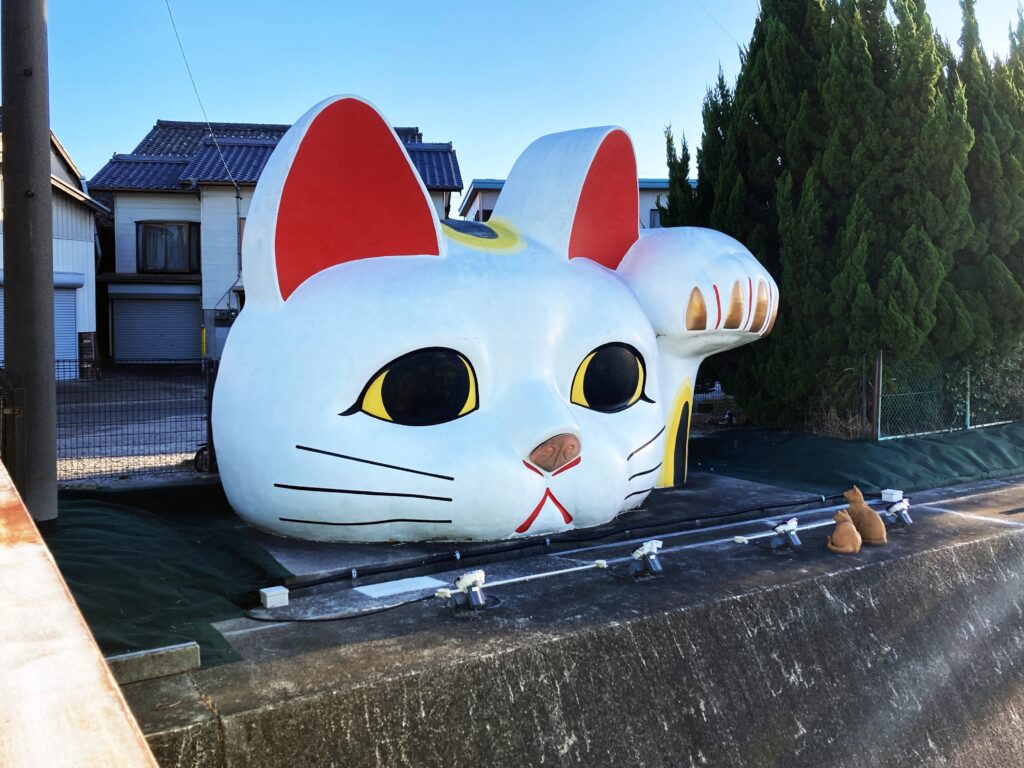 巨大招き猫の頭と招く手だけが、ドンと居座っています。常滑のシンボル「とこにゃん」です。