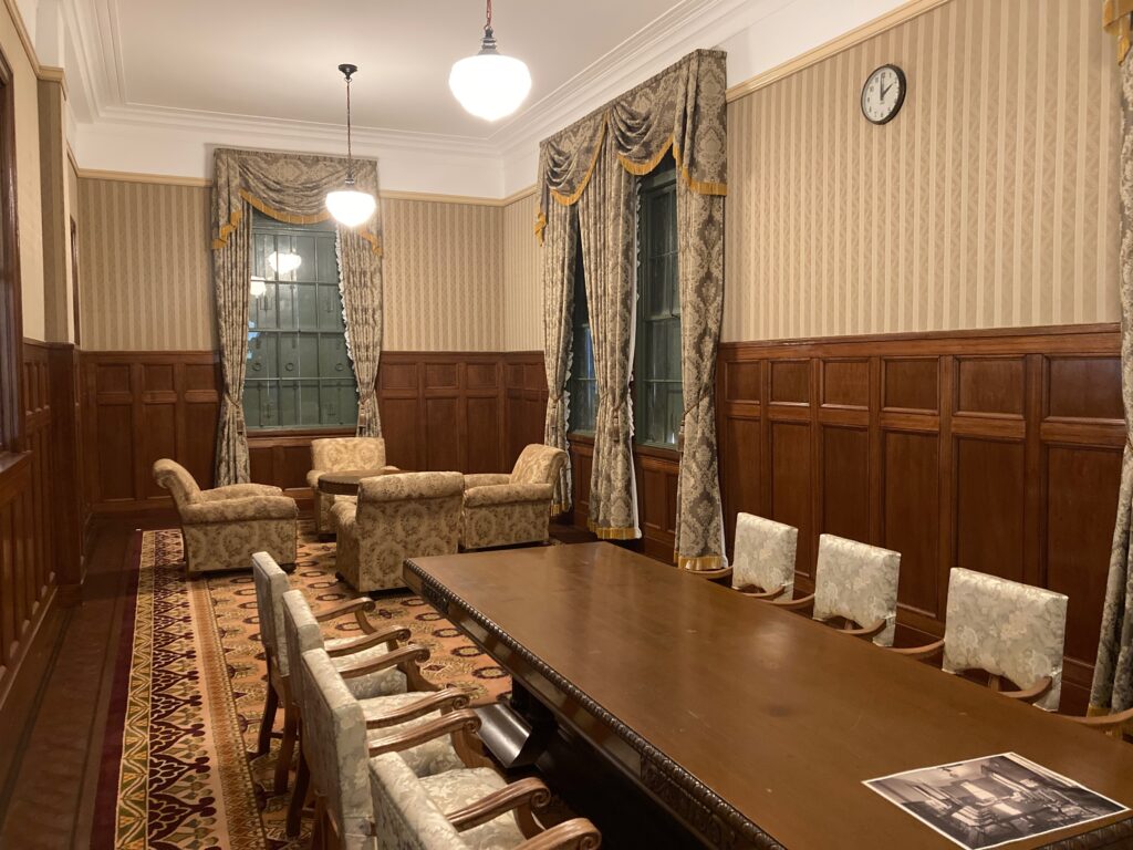 当時、使用されていたモノを忠実に再現してあり、中でもテーブルとソファーは当時のものらしいです。