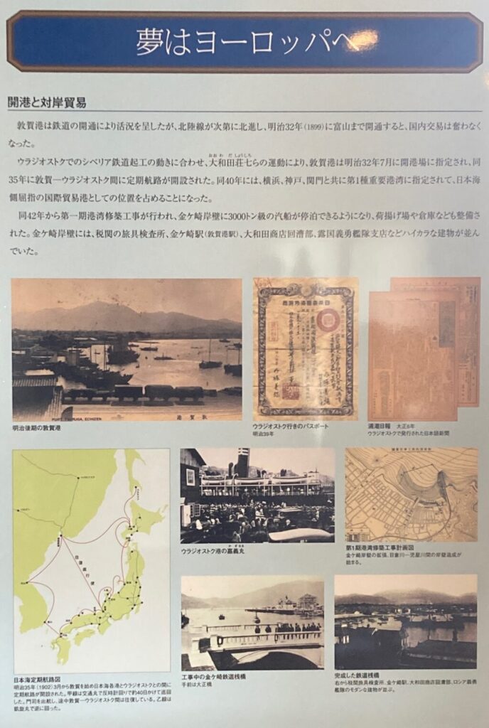 敦賀港が国際貿易港となったときは、敦賀に天の時、地の利が舞い降りていました。ウラジオストクとヨーロッパを繋ぐシベリア鉄道が開通し、その地形は古来からの天然の良港で交通の要衝です。